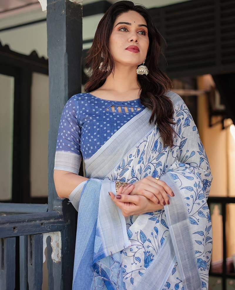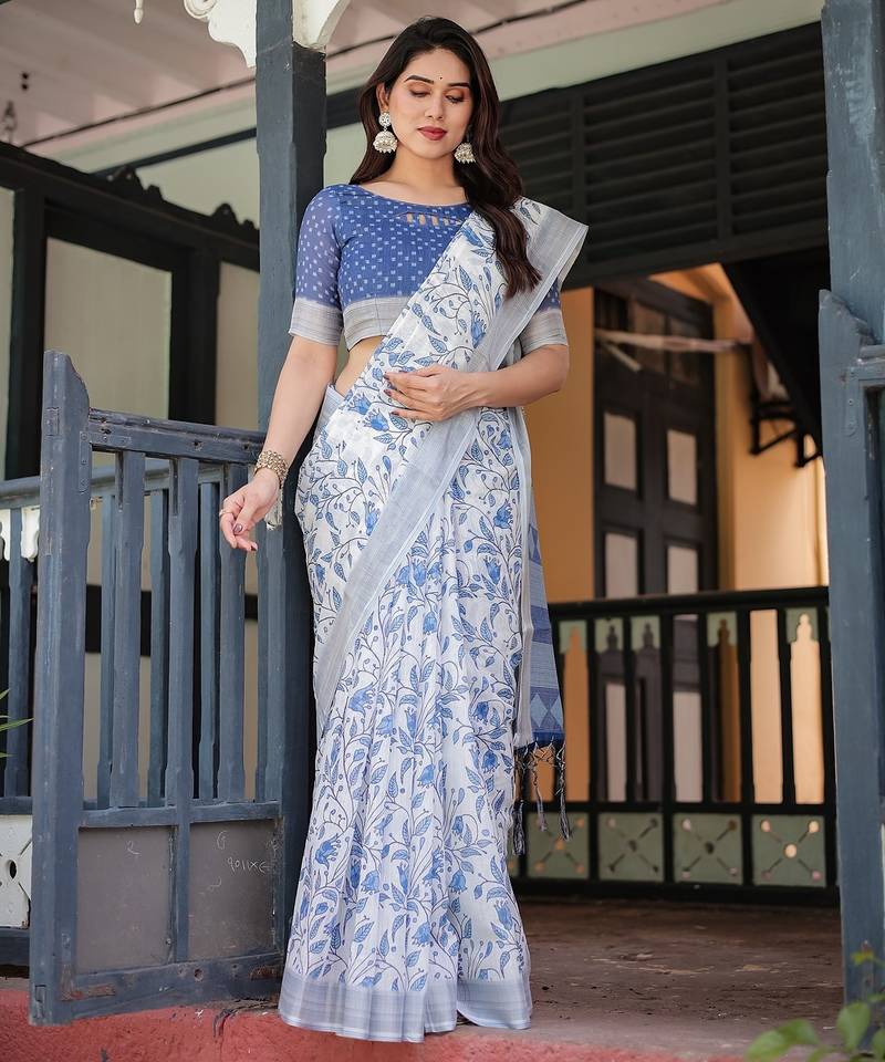 | Product Name | Festive Ready Handloom Linen Saree With Floral Artwork & Matching Blouse | |