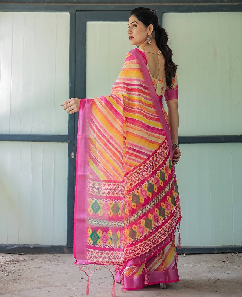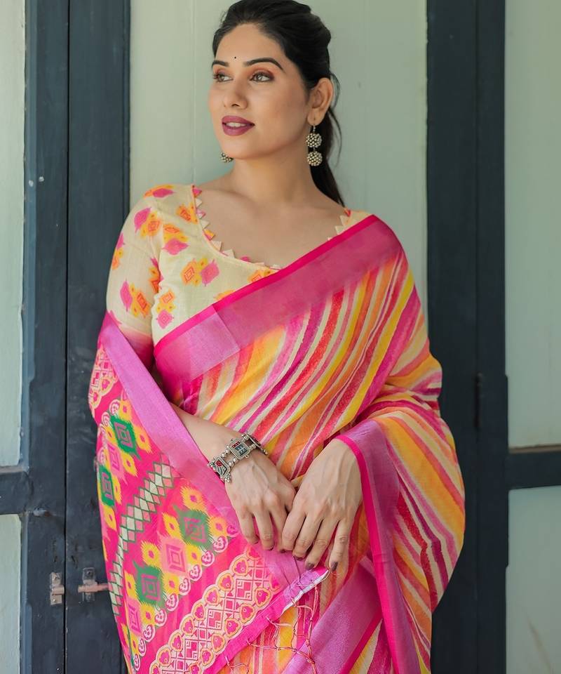 | Product Name | Festive Ready Handloom Linen Saree With Floral Artwork & Matching Blouse | |