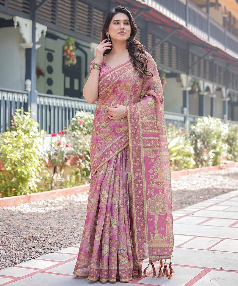 | Product Name | Graceful Handloom Cotton Saree With Artistic Floral Print & Tassels | |