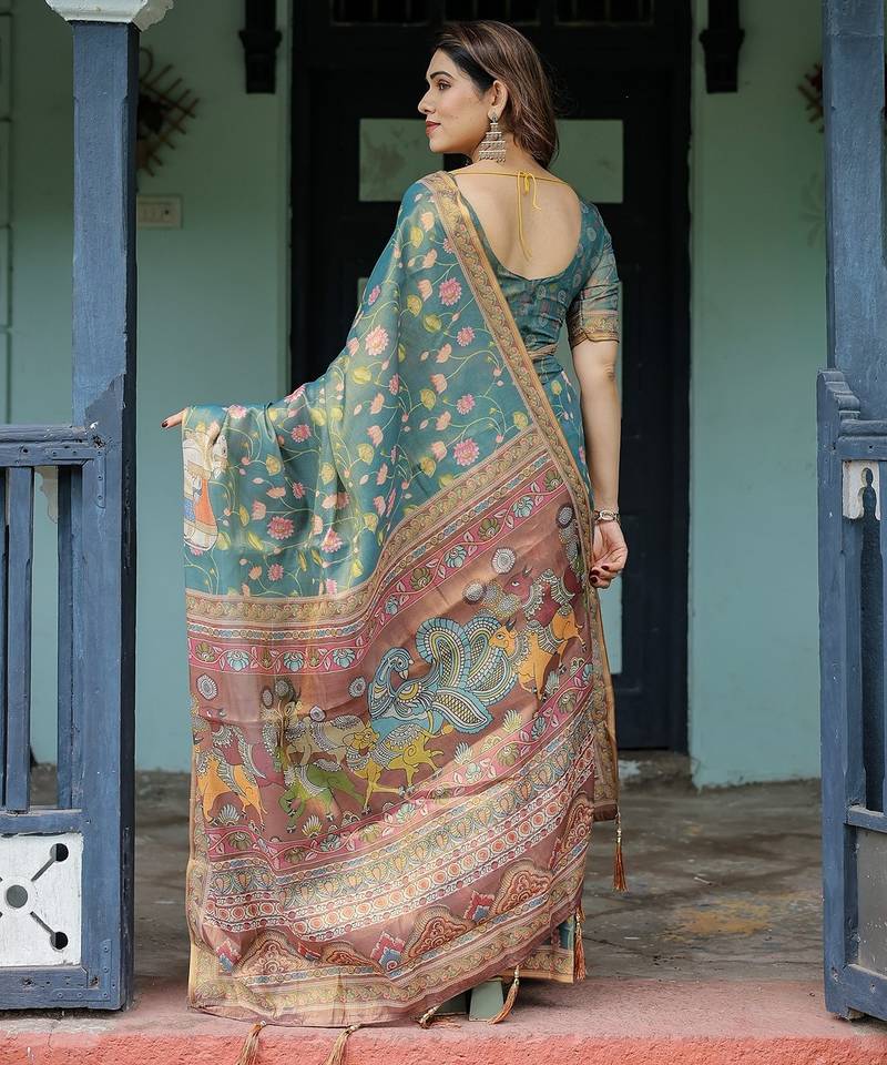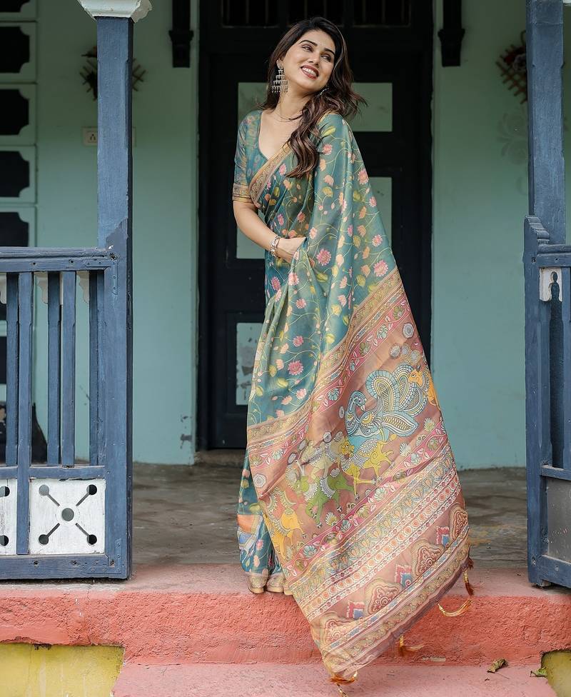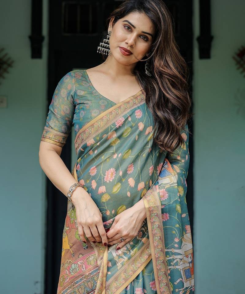 | Product Name | Graceful Handloom Cotton Saree With Artistic Floral Print & Tassels | |