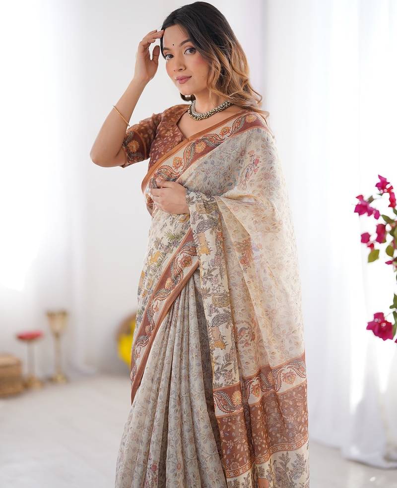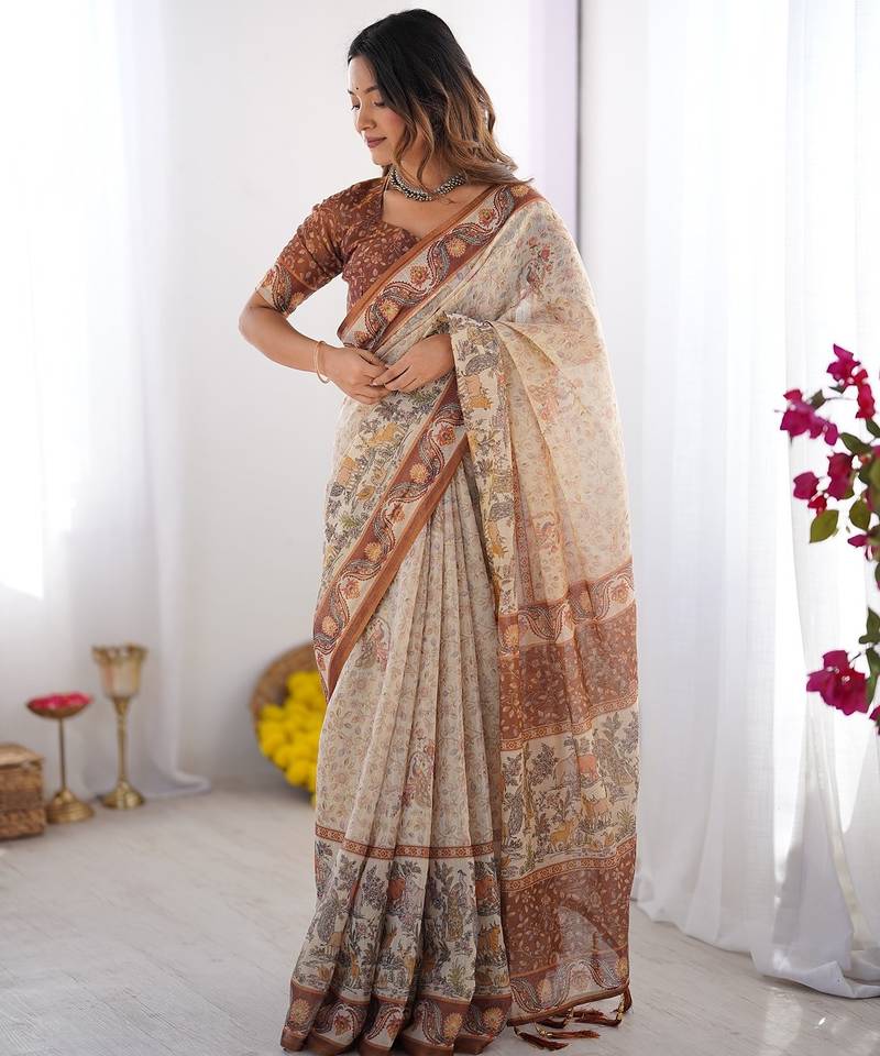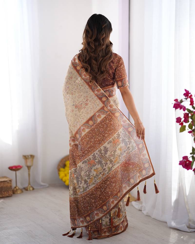 | Product Name | Graceful Handloom Cotton Saree With Artistic Floral Print & Tassels | |