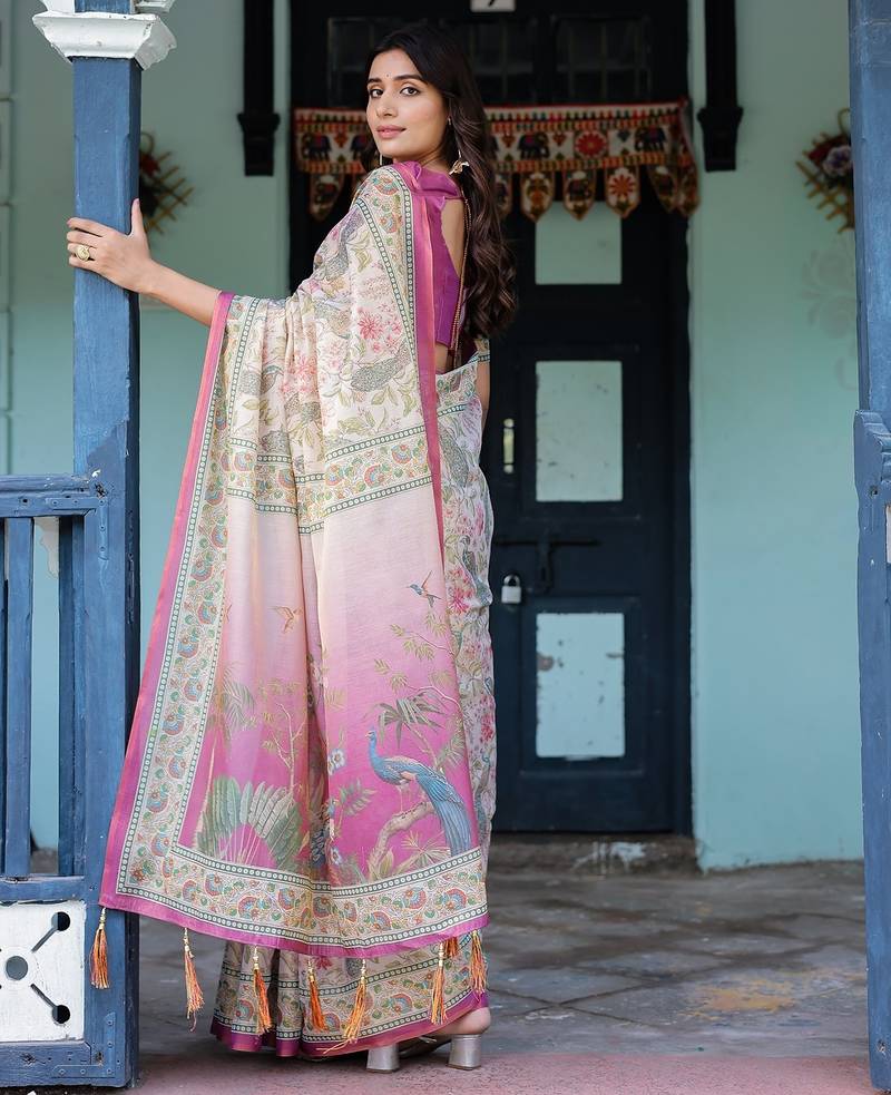 | Product Name | Graceful Handloom Cotton Saree With Artistic Floral Print & Tassels | |