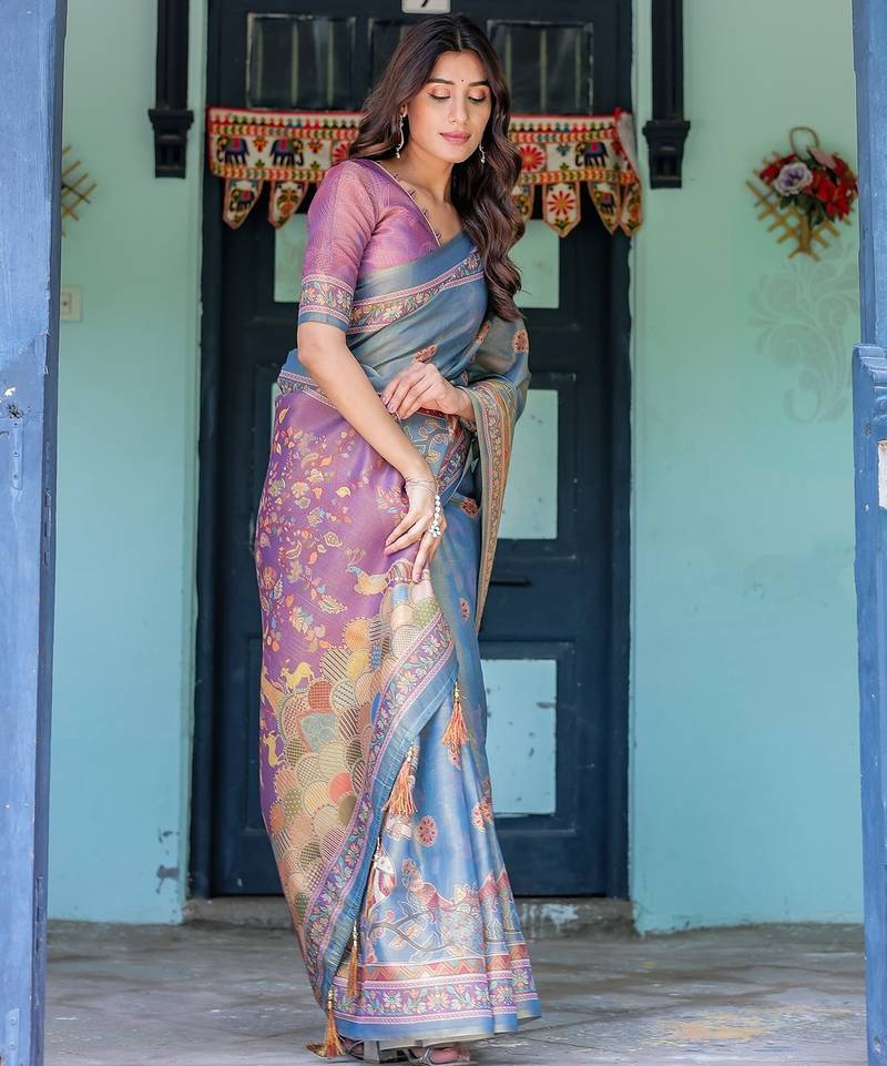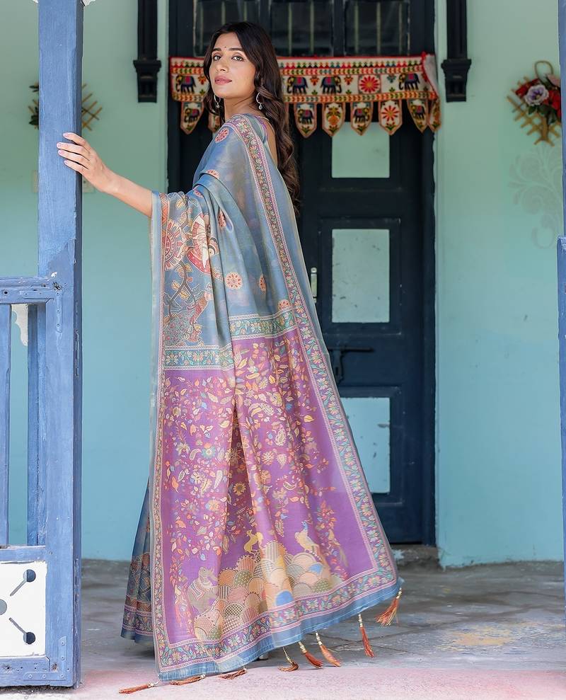 | Product Name | Graceful Handloom Cotton Saree With Artistic Floral Print & Tassels | |