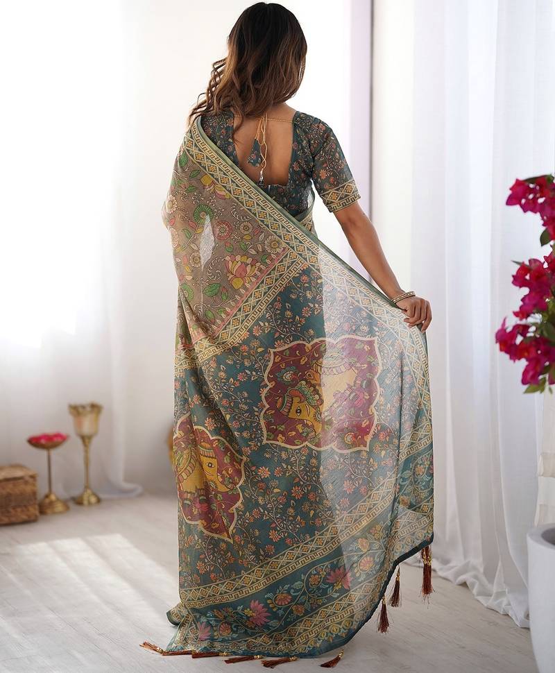 | Product Name | Handloom Cotton Floral Printed Saree With Tassels & Attached Blouse 5.5m | |