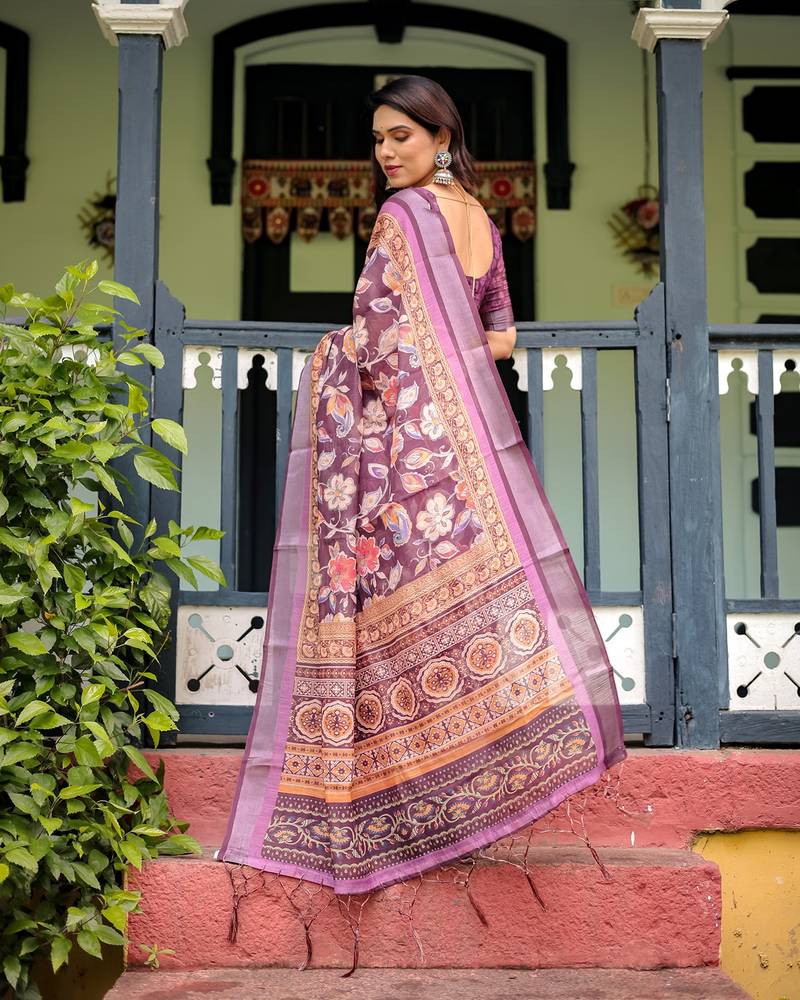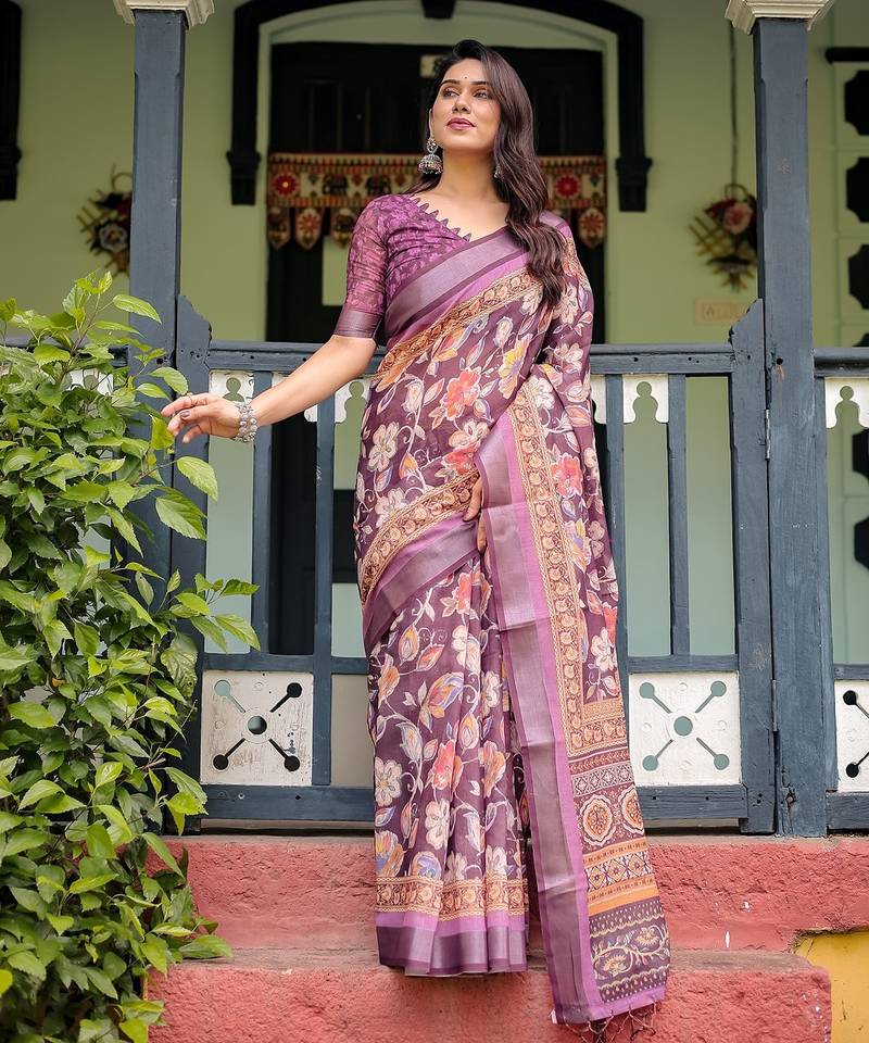 | Product Name | Linen Handloom Saree With Digital Floral Print And Tassels Festive Wear | |
