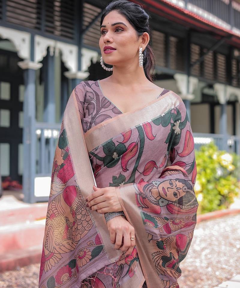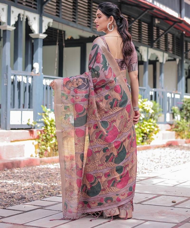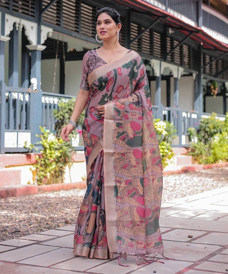 | Product Name | Linen Handloom Saree With Digital Floral Print And Tassels Festive Wear | |