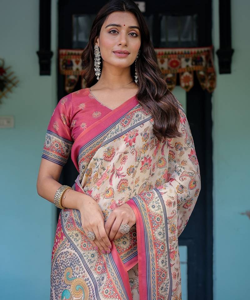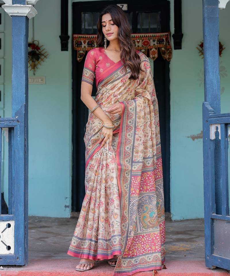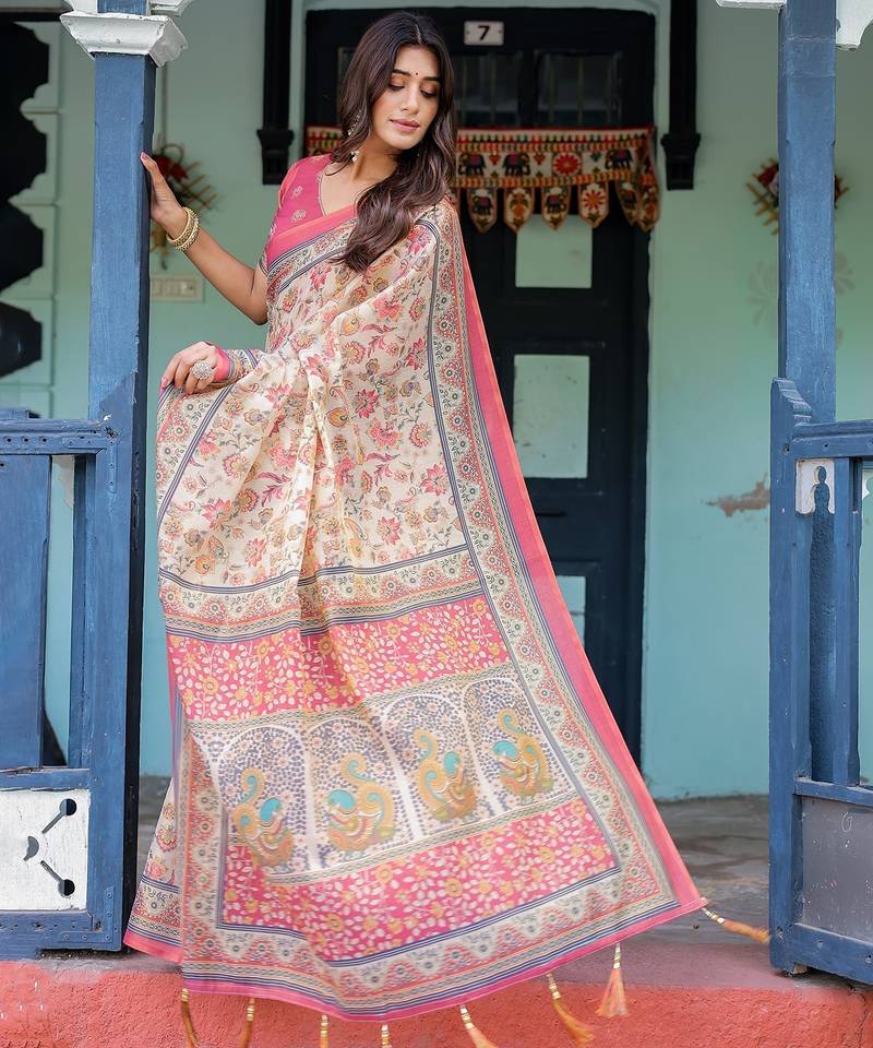 | Product Name | Pastel Floral Handloom Cotton Saree With Pallu Tassels & Blouse Piece | |