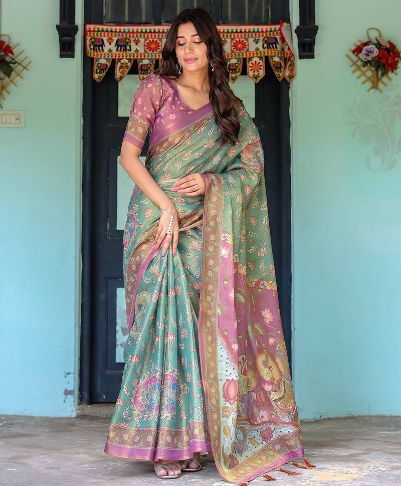 | Product Name | Pastel Floral Handloom Cotton Saree With Pallu Tassels & Blouse Piece | |