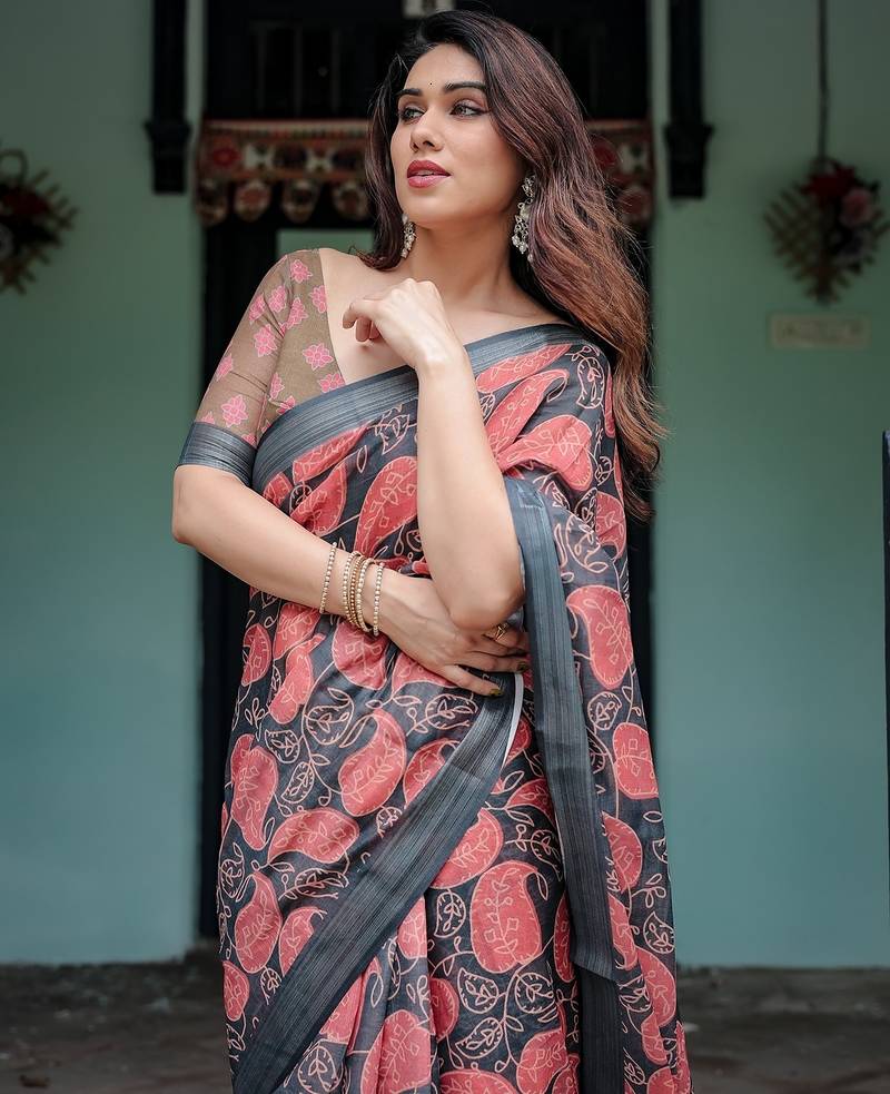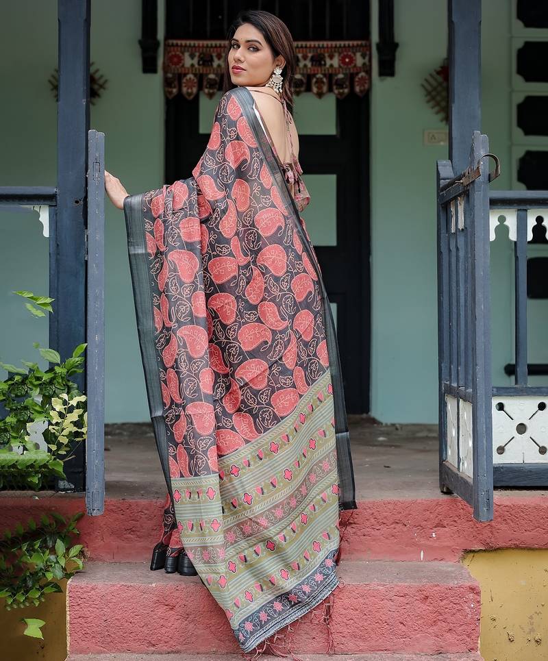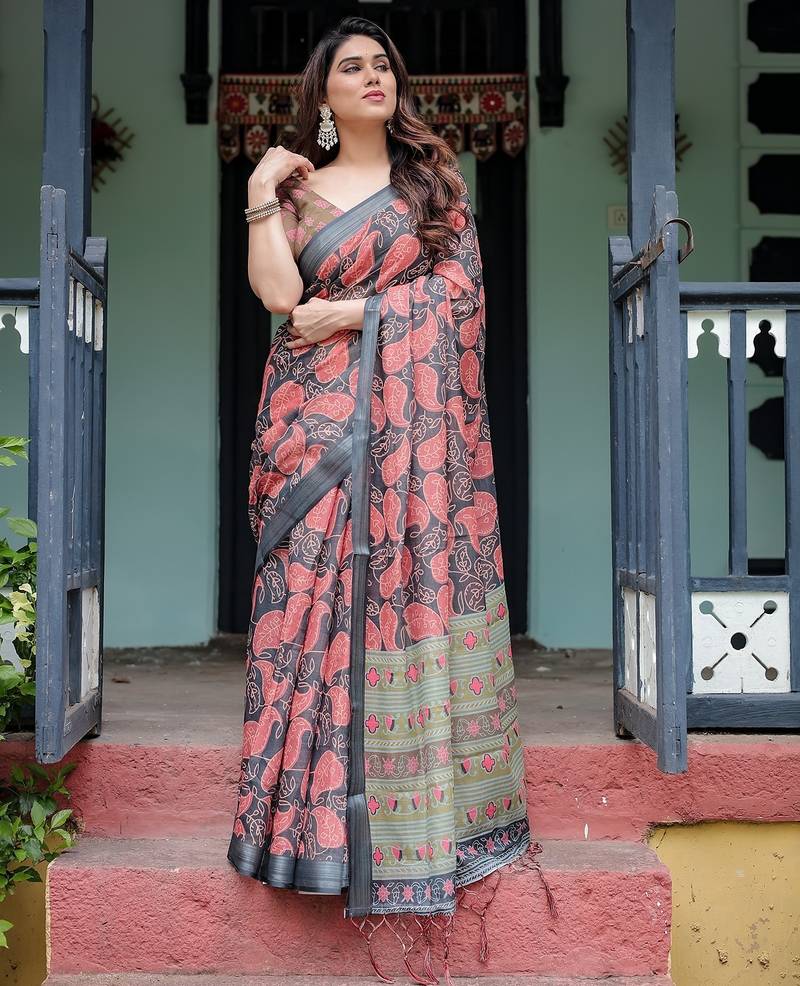 | Product Name | Pastel Floral Handloom Linen Saree With Pallu Tassels & Blouse Piece | |