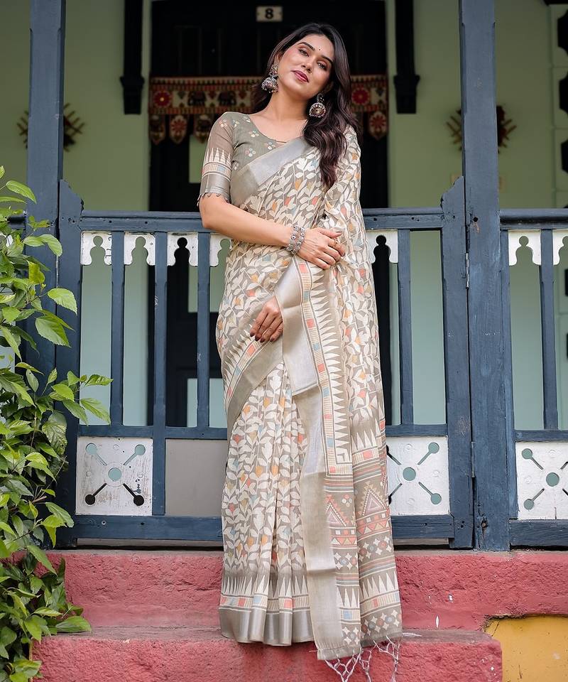 | Product Name | Pastel Floral Handloom Linen Saree With Pallu Tassels & Blouse Piece | |