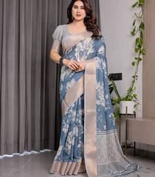 Pastel floral handloom linen weaved with golden zari saree with pallu tassels & blouse piece