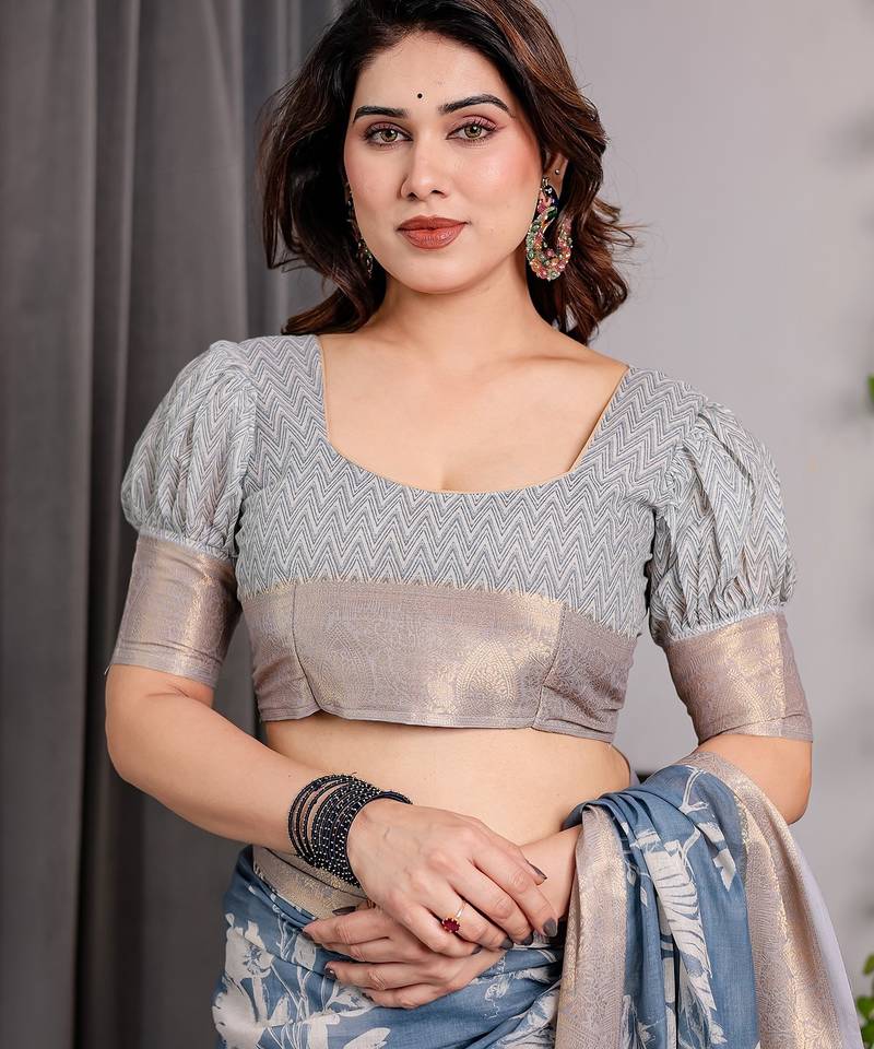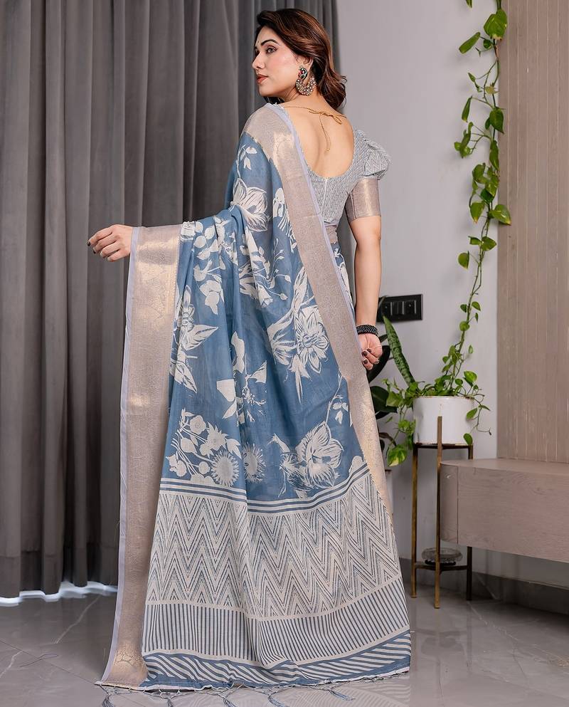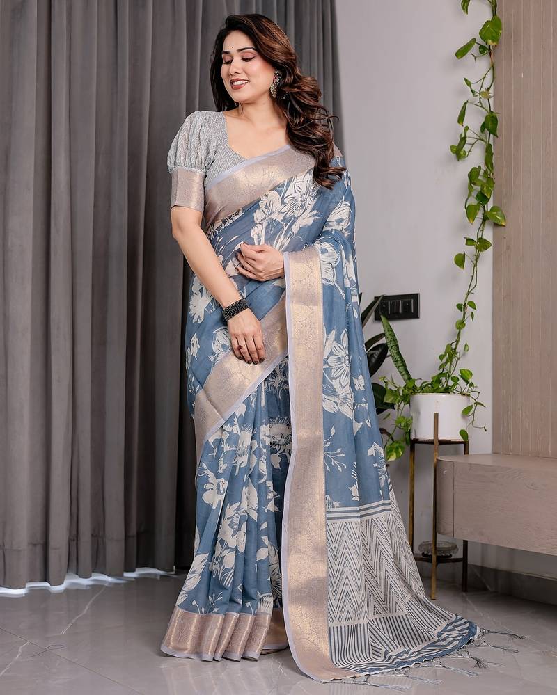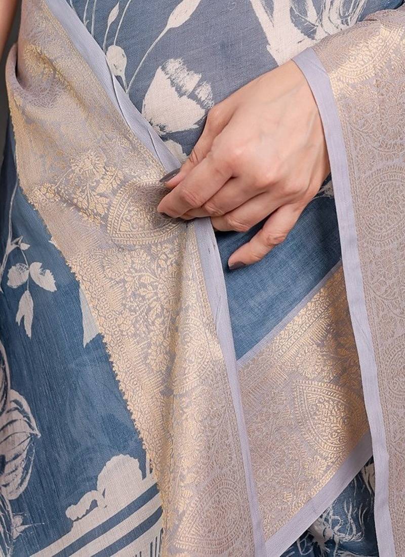 | Product Name | Pastel Floral Handloom Linen Weaved With Golden Zari Saree With Pallu Tassels & Blouse Piece | |