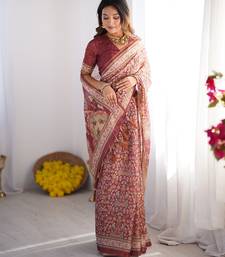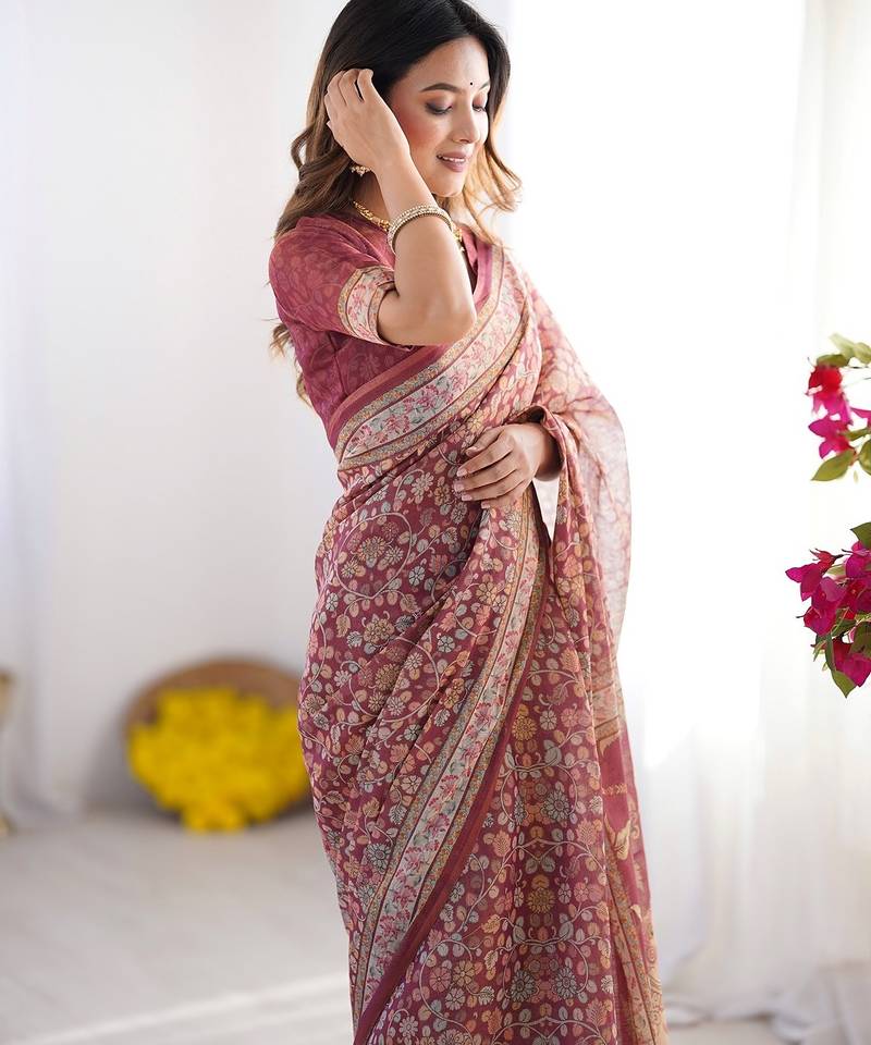 Premium floral print handloom cotton saree with pallu tassels 5.5m