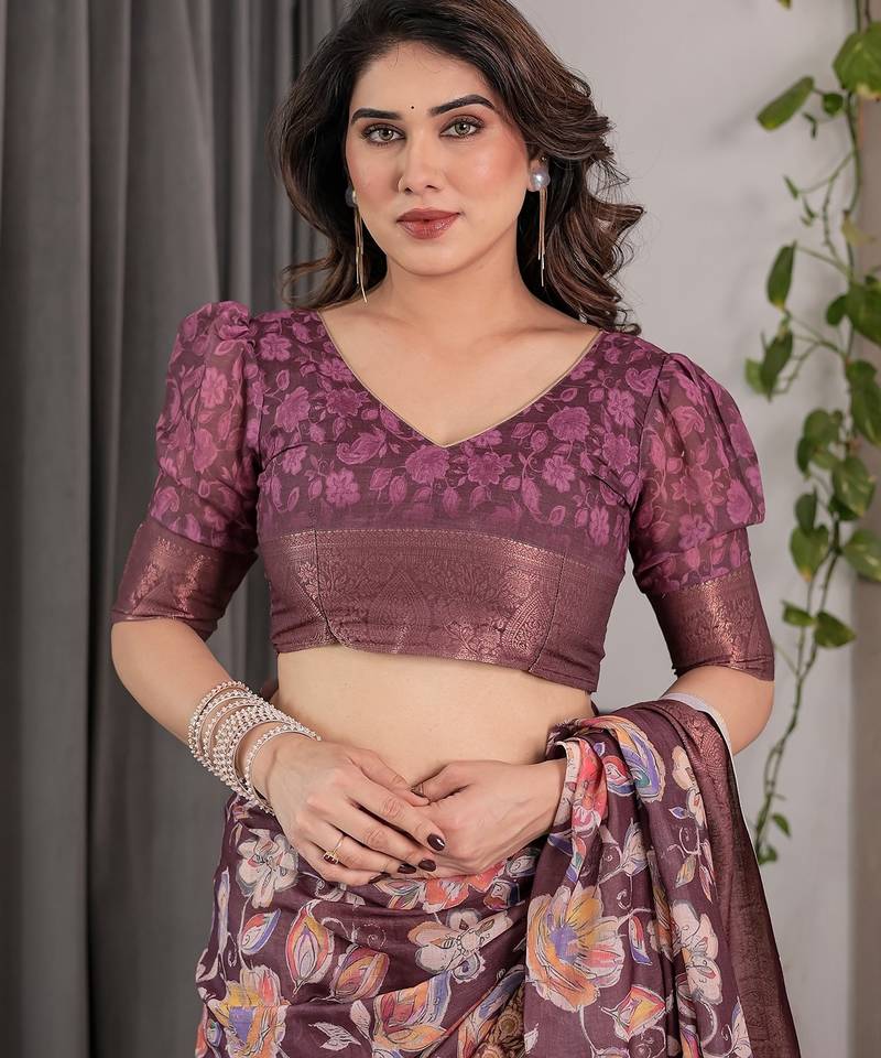| Product Name | Premium Floral Print Handloom Linen Weaved With Golden Zari Saree With Pallu Tassels 5.5m | |