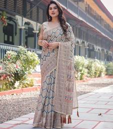 Printed floral handloom cotton saree with stylish tassel finish ready to wear
