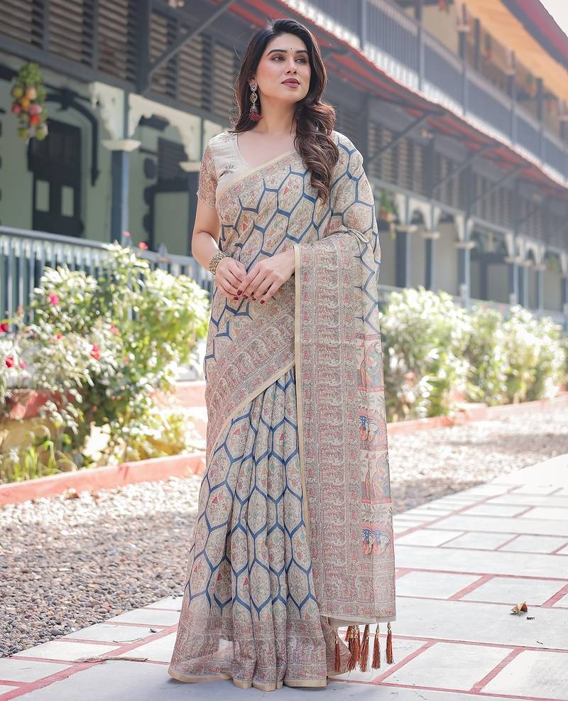 | Product Name | Printed Floral Handloom Cotton Saree With Stylish Tassel Finish Ready To Wear | |