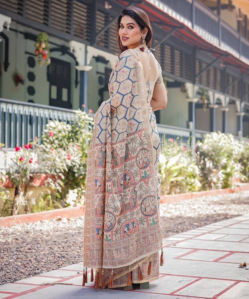 | • | Saree | : | Color- Multicolor / Fabric- Linen |