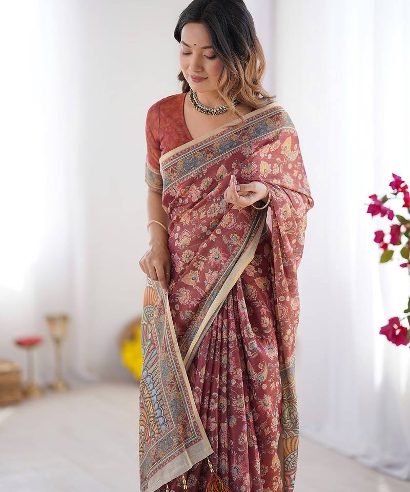 | Product Name | Printed Floral Handloom Cotton Saree With Stylish Tassel Finish Ready To Wear | |