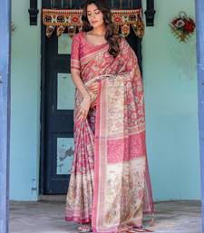 Printed floral handloom cotton saree with stylish tassel finish ready to wear