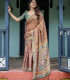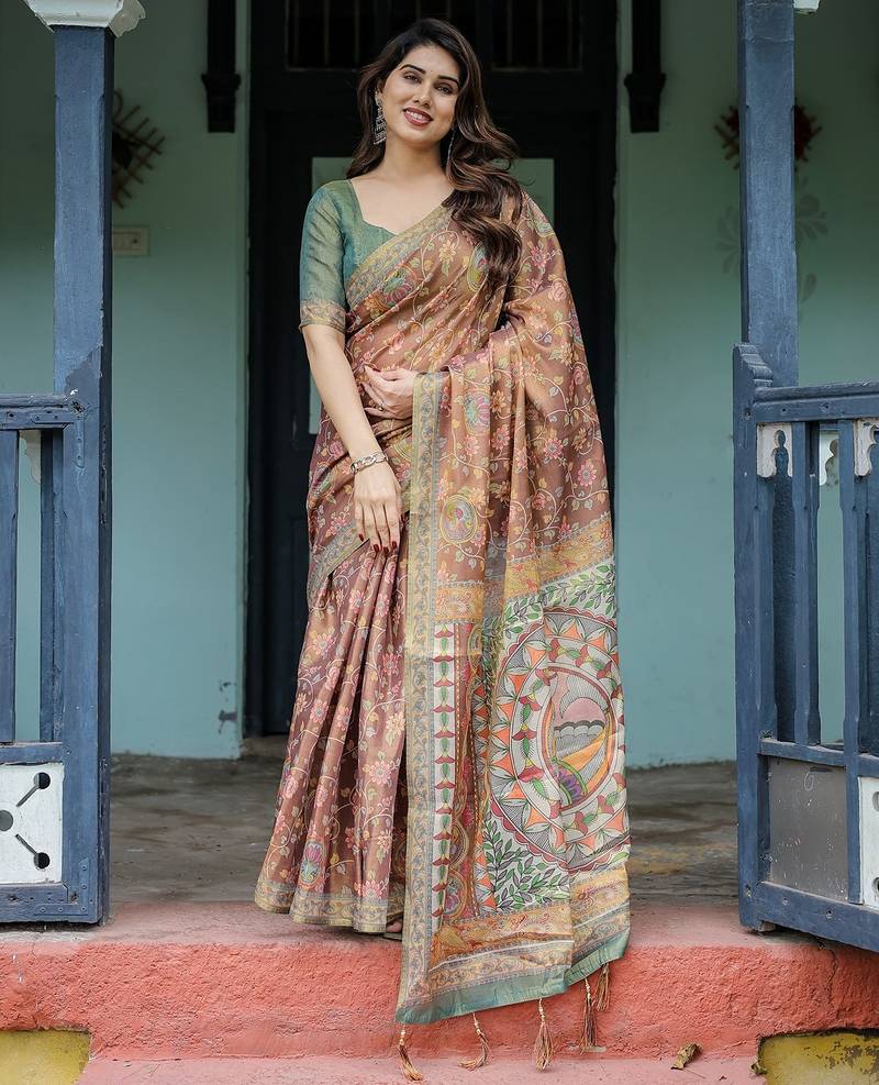 Printed floral handloom cotton saree with stylish tassel finish ready to wear