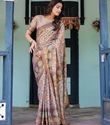 Printed floral handloom cotton saree with stylish tassel finish ready to wear