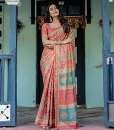 Printed floral handloom cotton saree with stylish tassel finish ready to wear