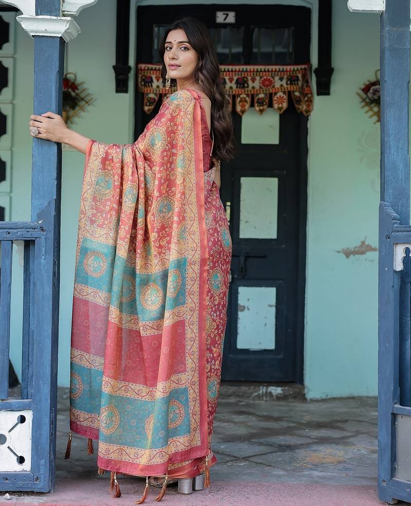 | Product Name | Printed Floral Handloom Cotton Saree With Stylish Tassel Finish Ready To Wear | |