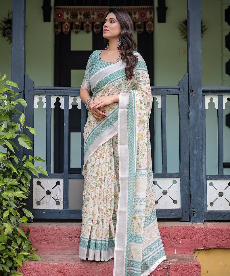 | Product Name | Printed Floral Handloom Linen Saree With Stylish Tassel Finish Ready To Wear | |