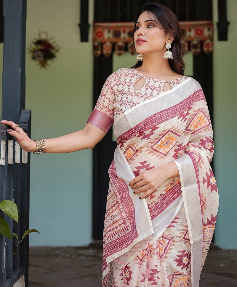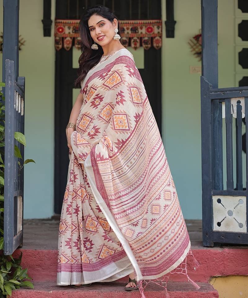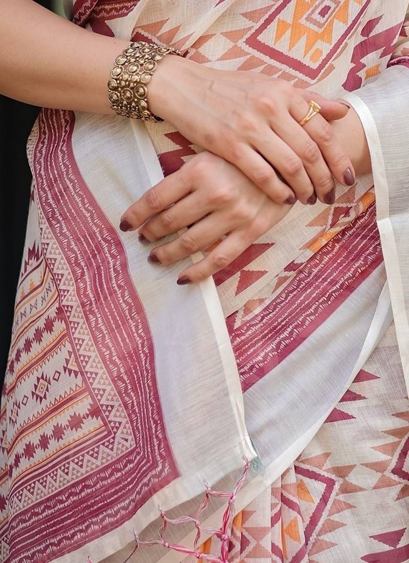 | Product Name | Printed Handloom Linen Saree For Women With Floral Design And Tassels | |