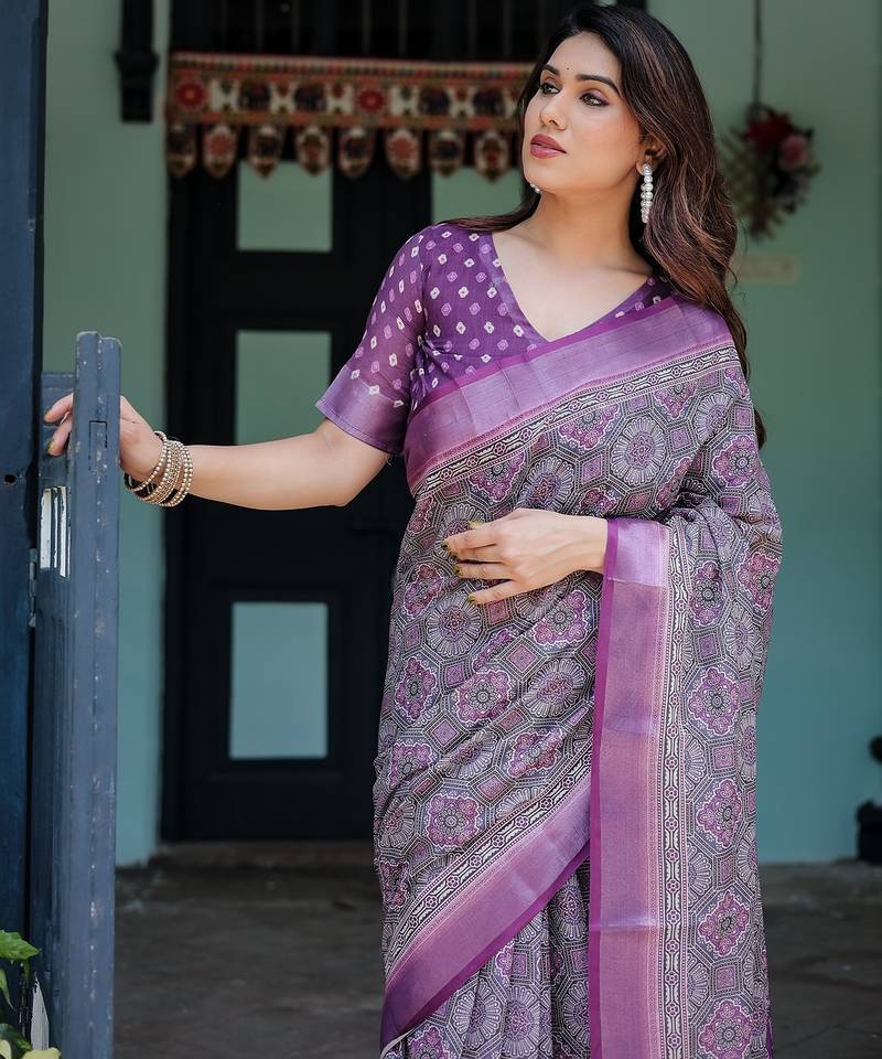 | Product Name | Pure Linen Handloom Saree With Floral Print And Designer Tassels | |