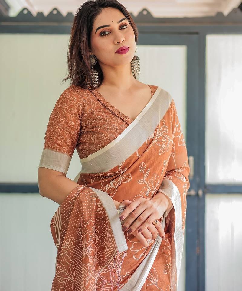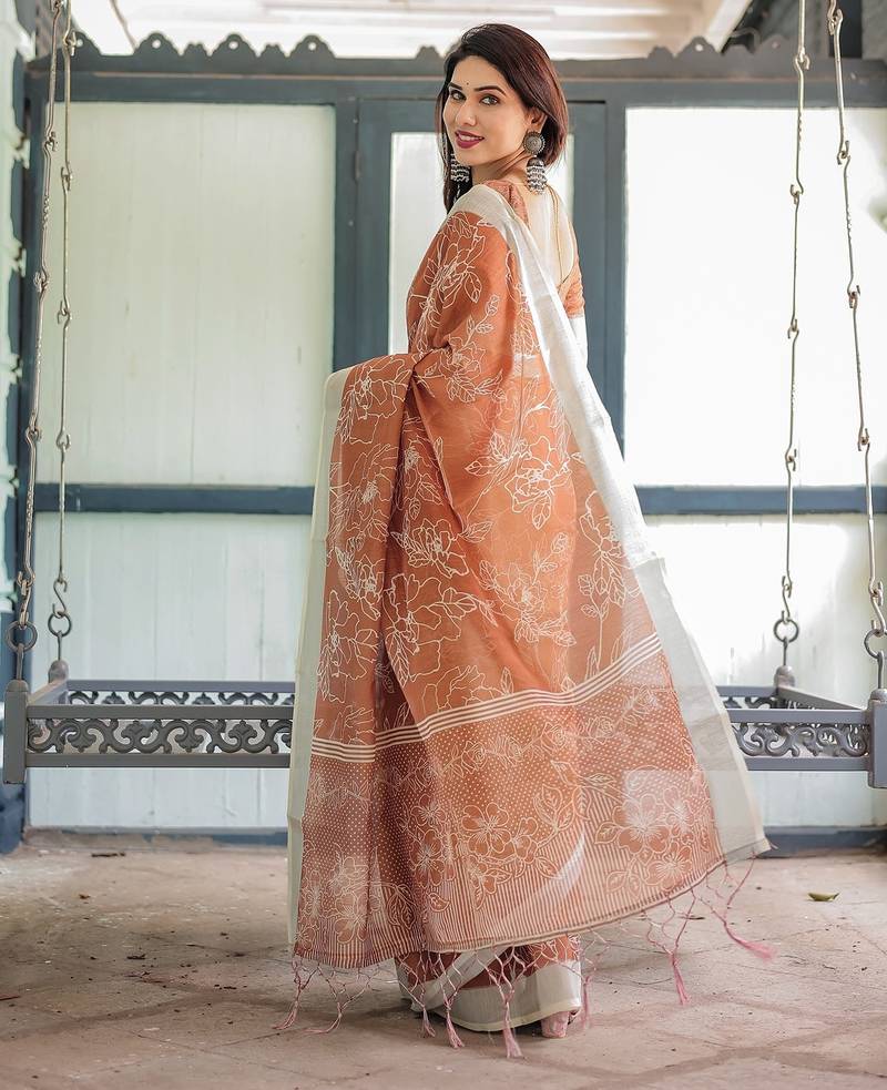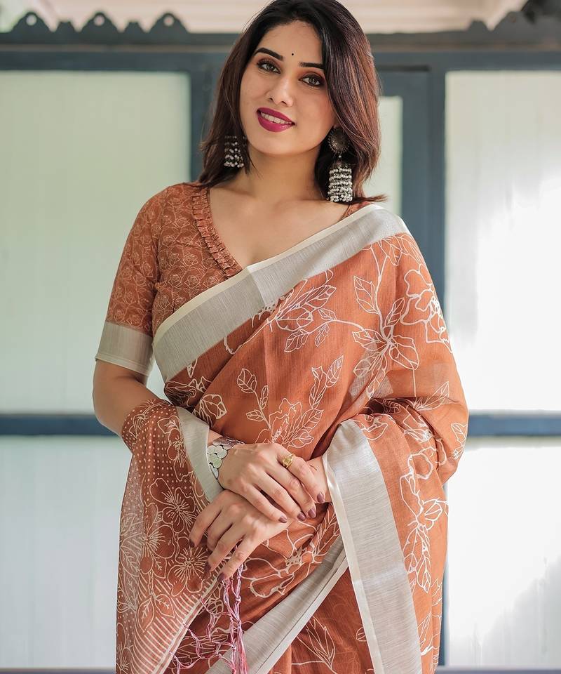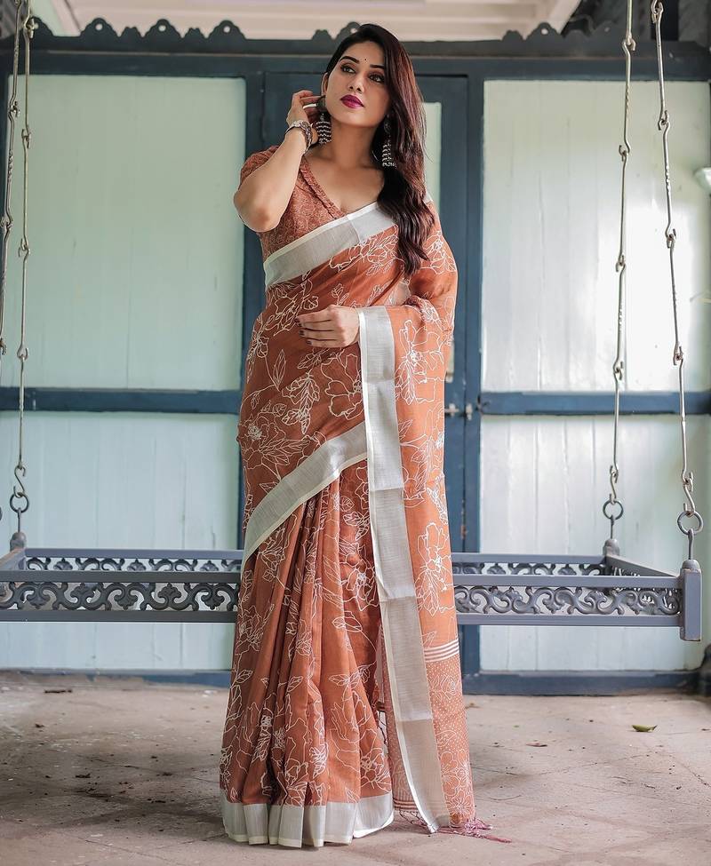 | Product Name | Pure Linen Handloom Saree With Floral Print And Designer Tassels | |
