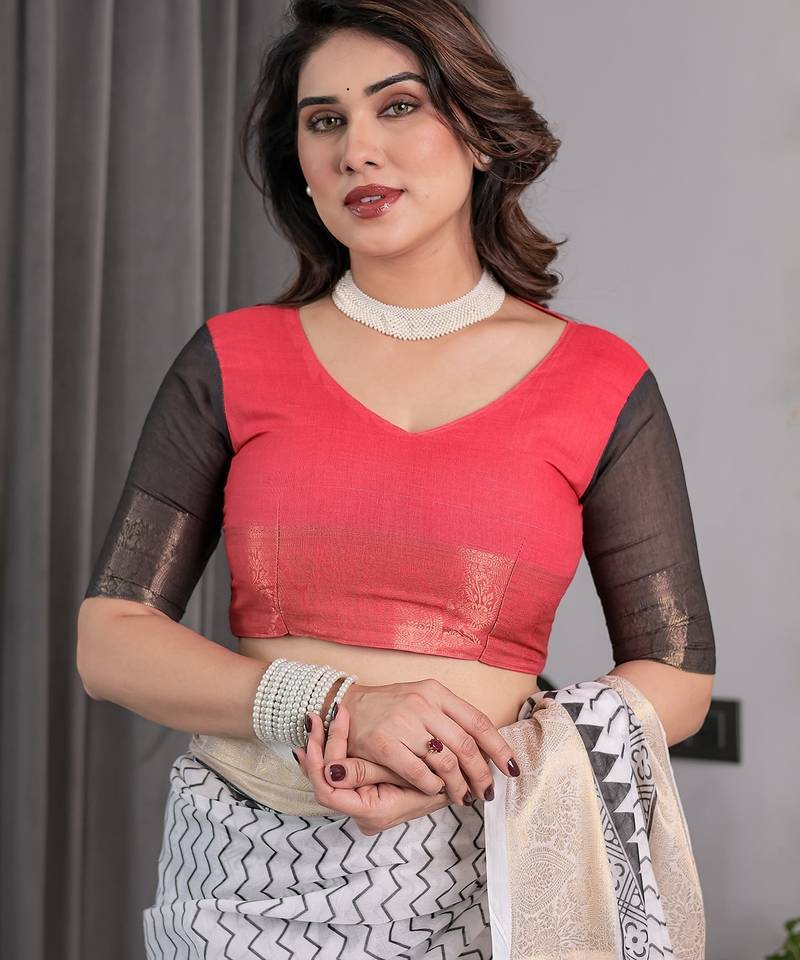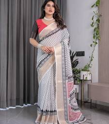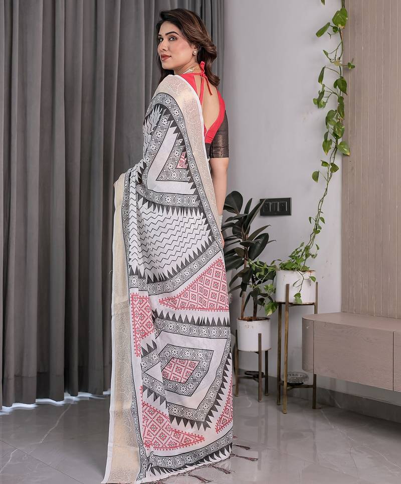 | Product Name | Pure Linen Weaved With Golden Zari Handloom Saree With Floral Print And Designer Tassels | |