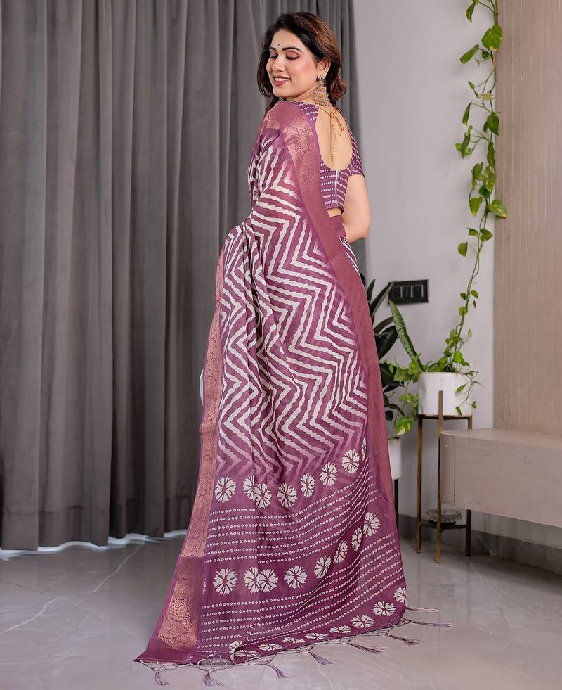 | Product Name | Pure Linen Weaved With Golden Zari Handloom Saree With Floral Print And Designer Tassels | |