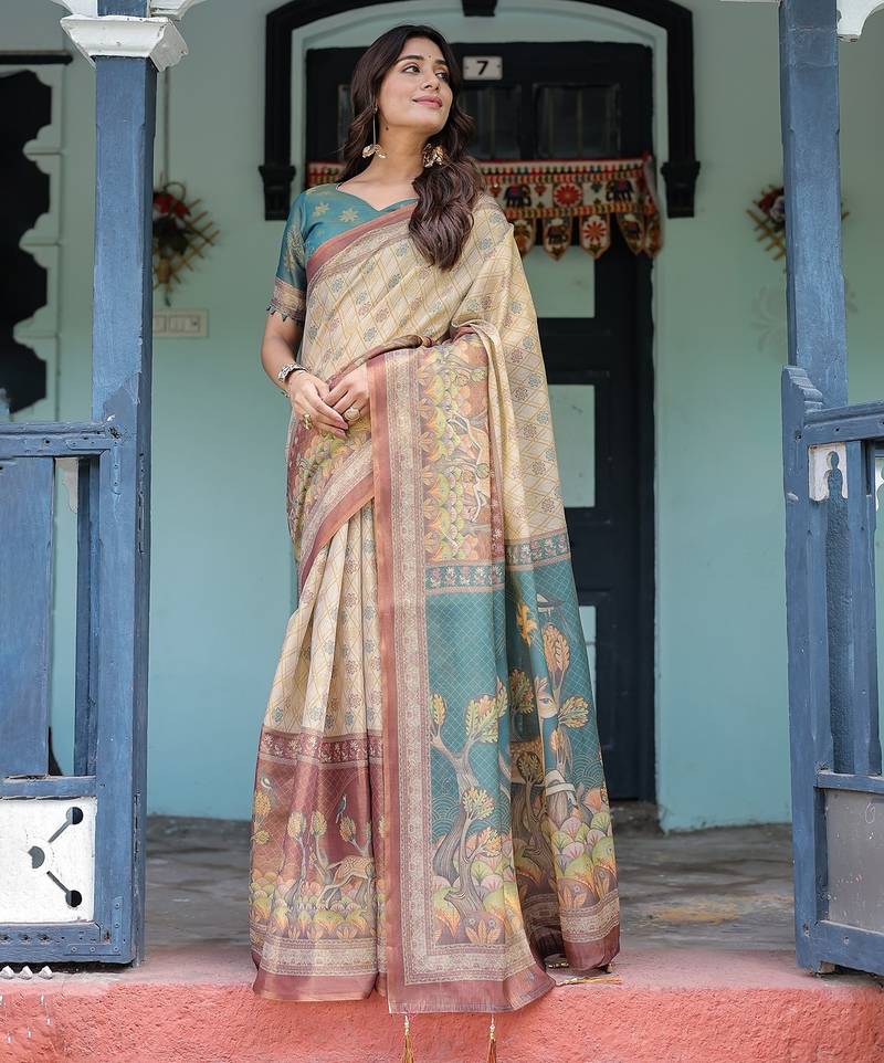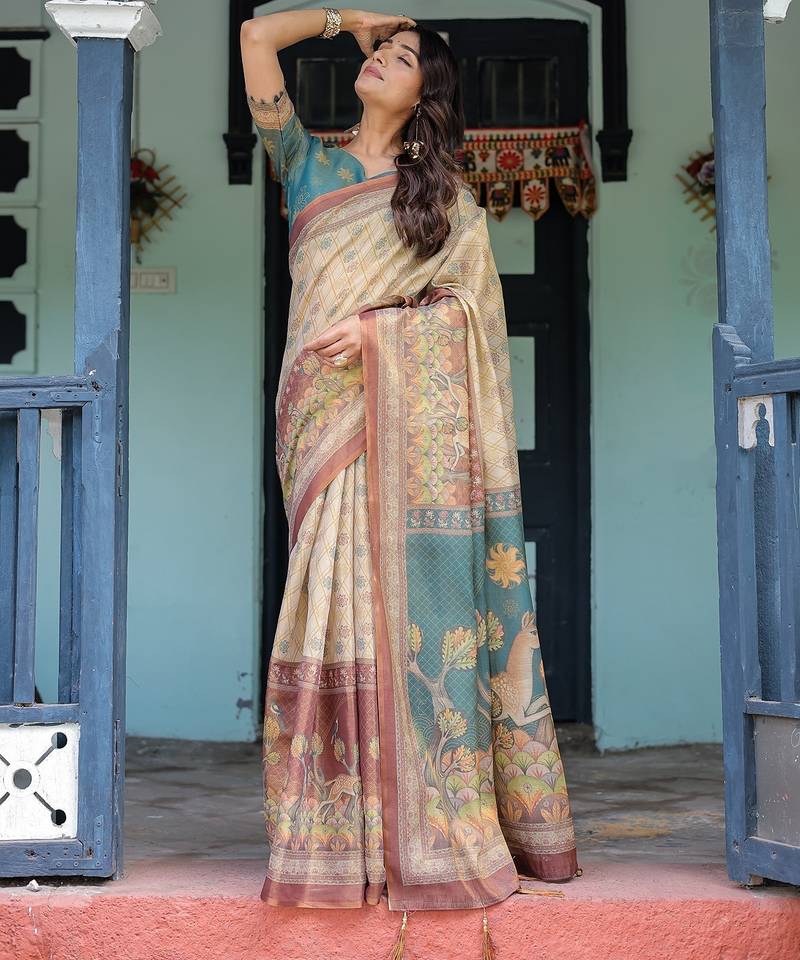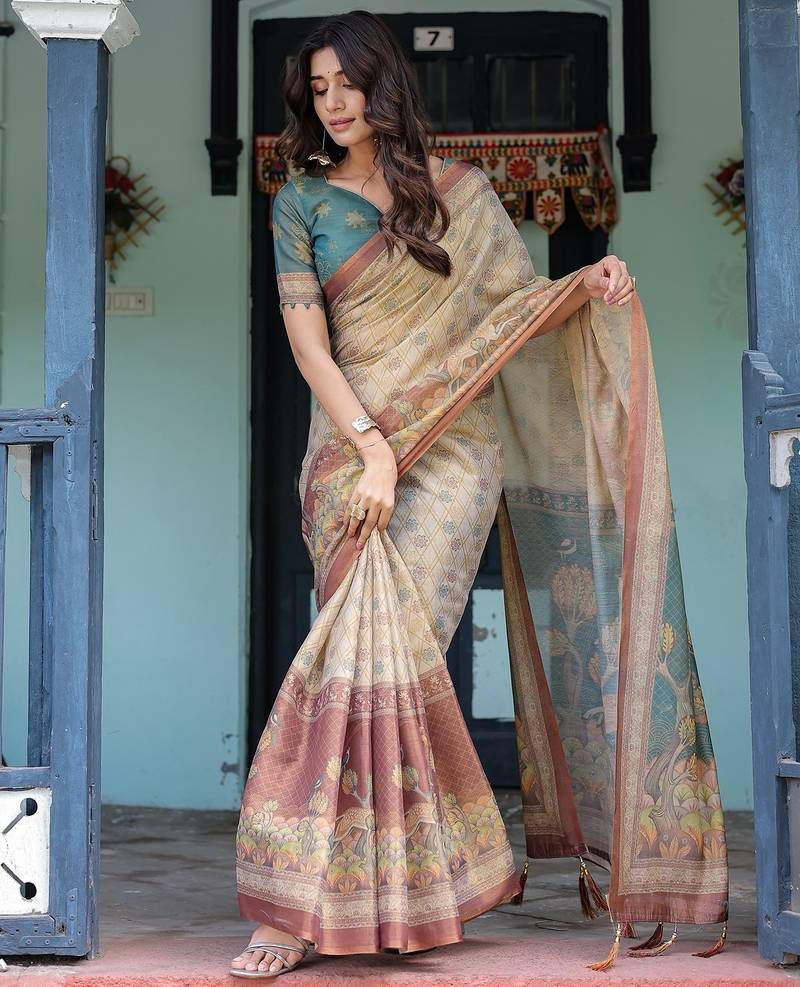 Soft handloom cotton floral saree with tassels includes 0.8m blouse