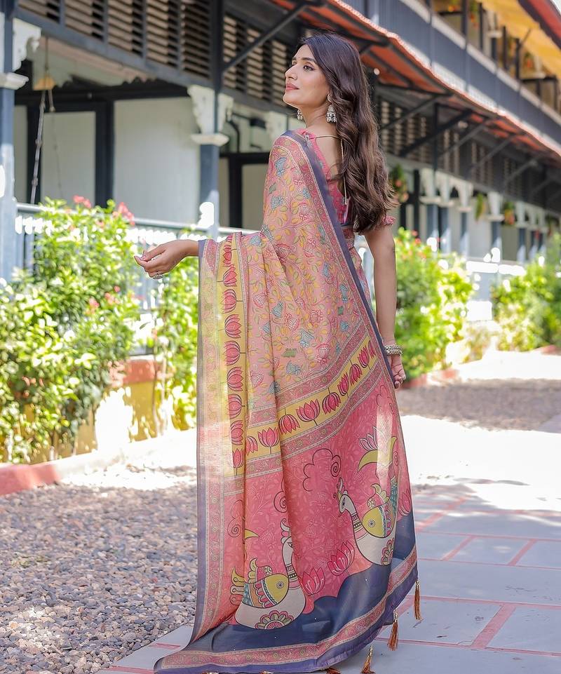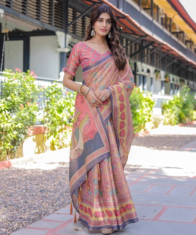 | Product Name | Soft Handloom Cotton Saree With Multicolor Floral Print And Tassel Edges | |