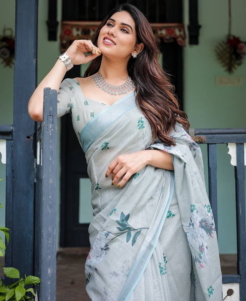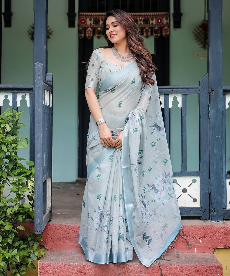 | Product Name | Soft Handloom Linen Floral Saree With Tassels Includes 0.8m Blouse | |