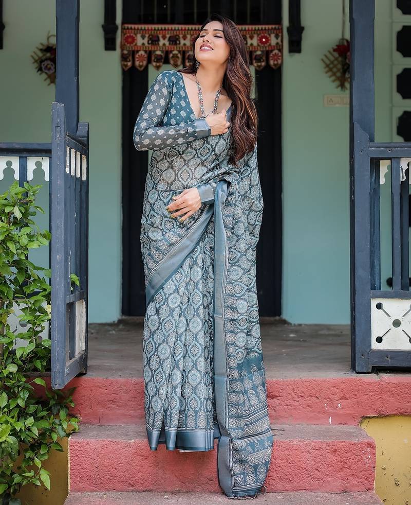 | Product Name | Stylish Linen Handloom Saree With Floral Digital Print And Tassels 5.5m + 0.8m | |