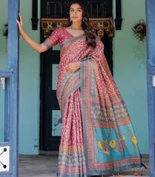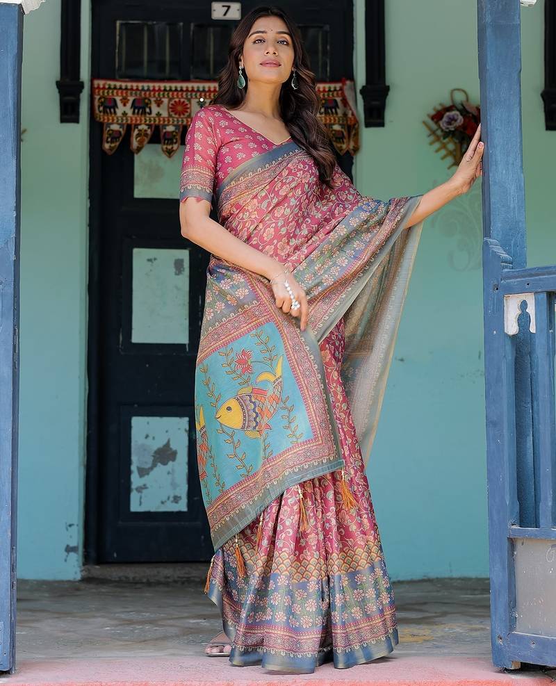 Traditional handloom cotton floral saree with matching blouse & tassel detailing