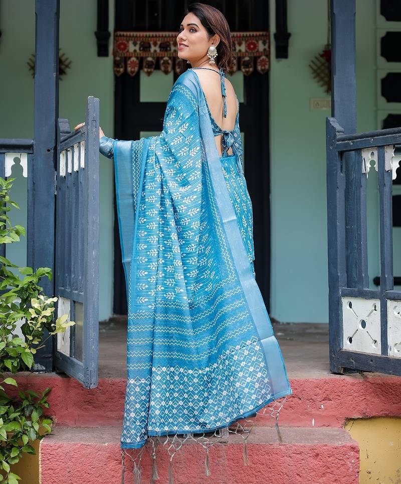 | Product Name | Traditional Handloom Linen Floral Saree With Matching Blouse & Tassel Detailing | |