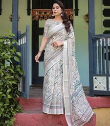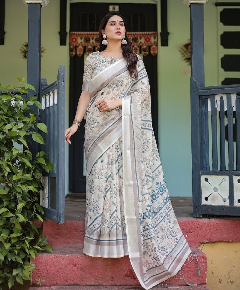 | Product Name | Women S Handloom Linen Saree Floral Printed With Attached Blouse & Tassels | |