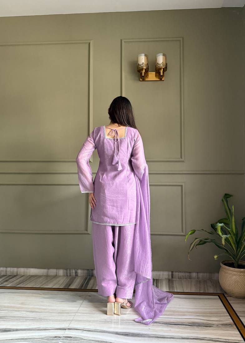 Lavendar farshi salwar suit with siroski work stitched