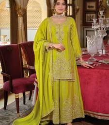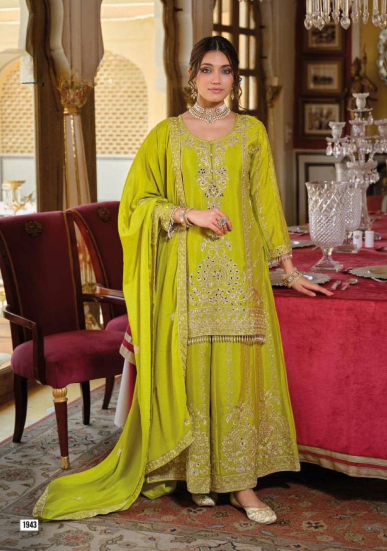 Chinon free size stitched suit with embroidery work
