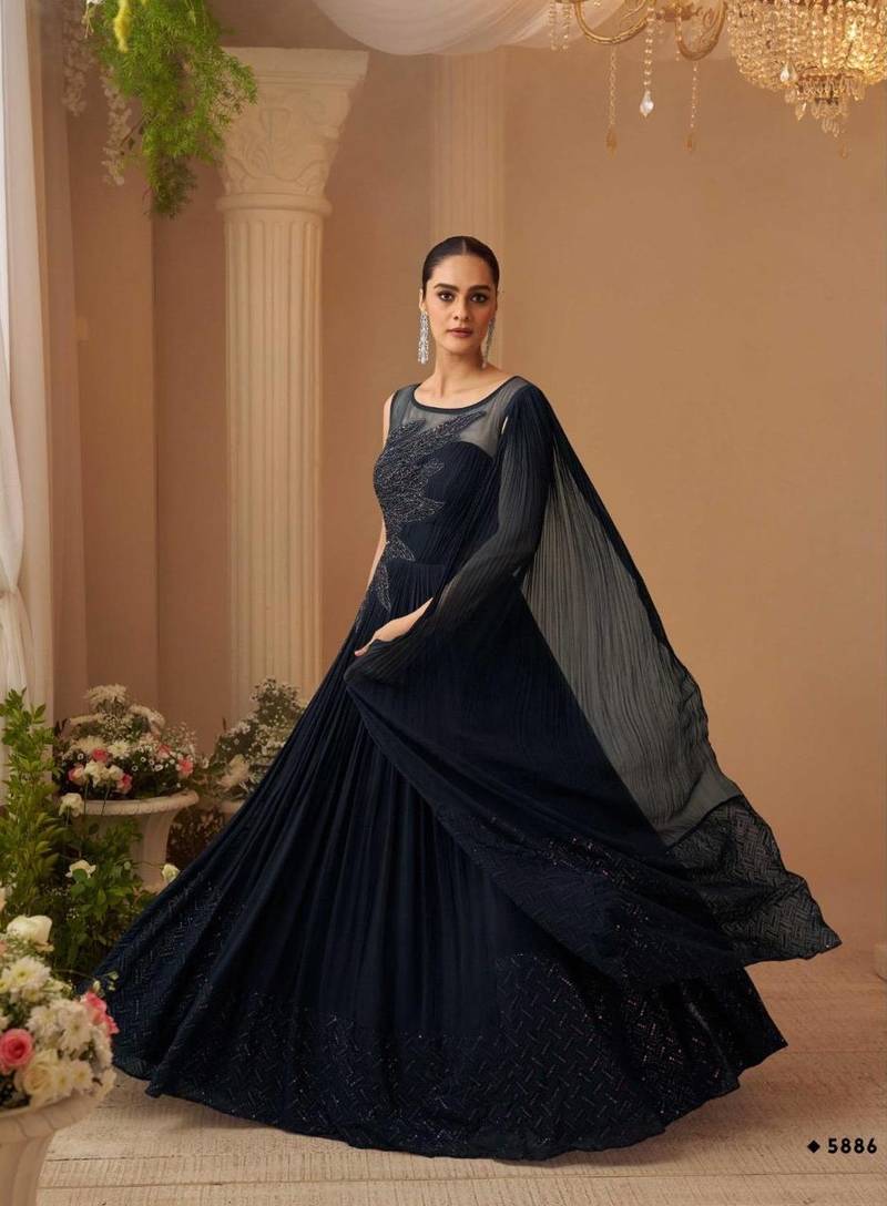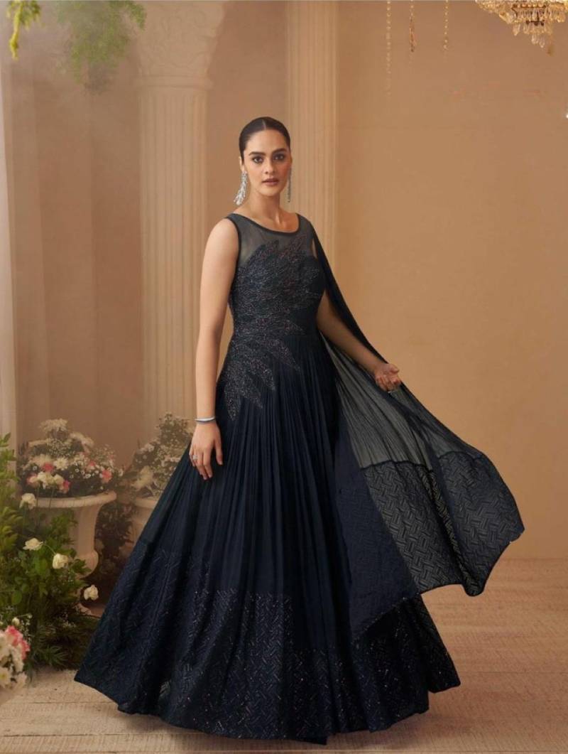 | Product Name | Chinon Silk Free Size Stitched Gown With Embroidery Work | |