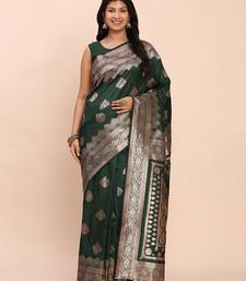 Dark green banarasi silk saree with blouse