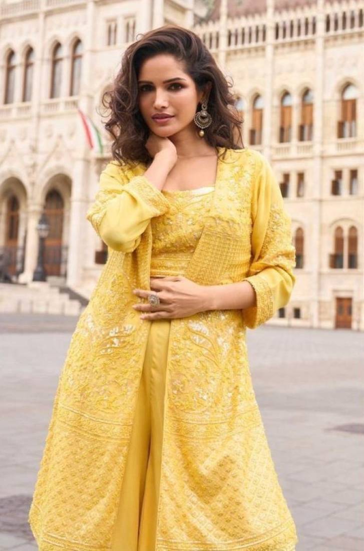 | • | Kameez | : | Color- Yellow / Fabric- Georgette |