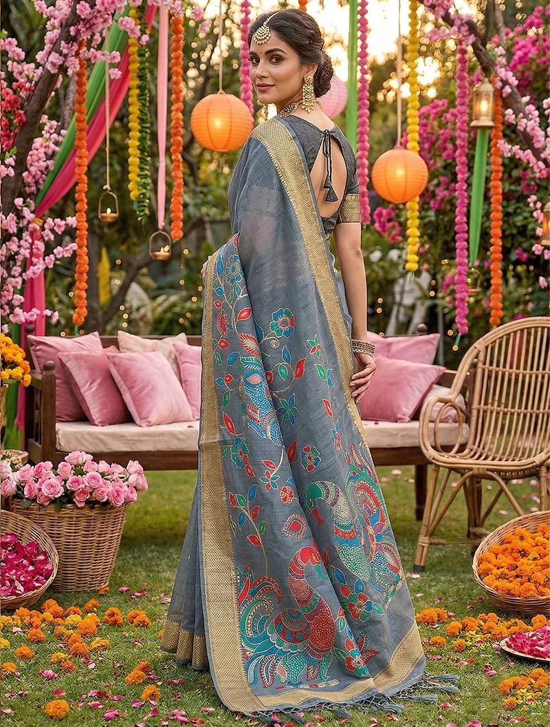 | • | Saree | : | Color- Grey / Fabric- Linen |