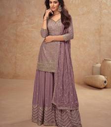 Light pink chinon sequin embroidered readymade salwar suit (free size) stitched