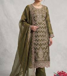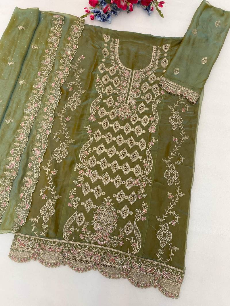 Mehendi silk semi stitched suit with embroidery & sequence work
