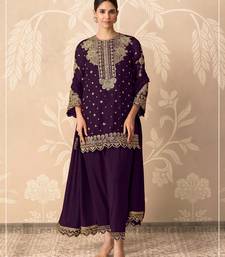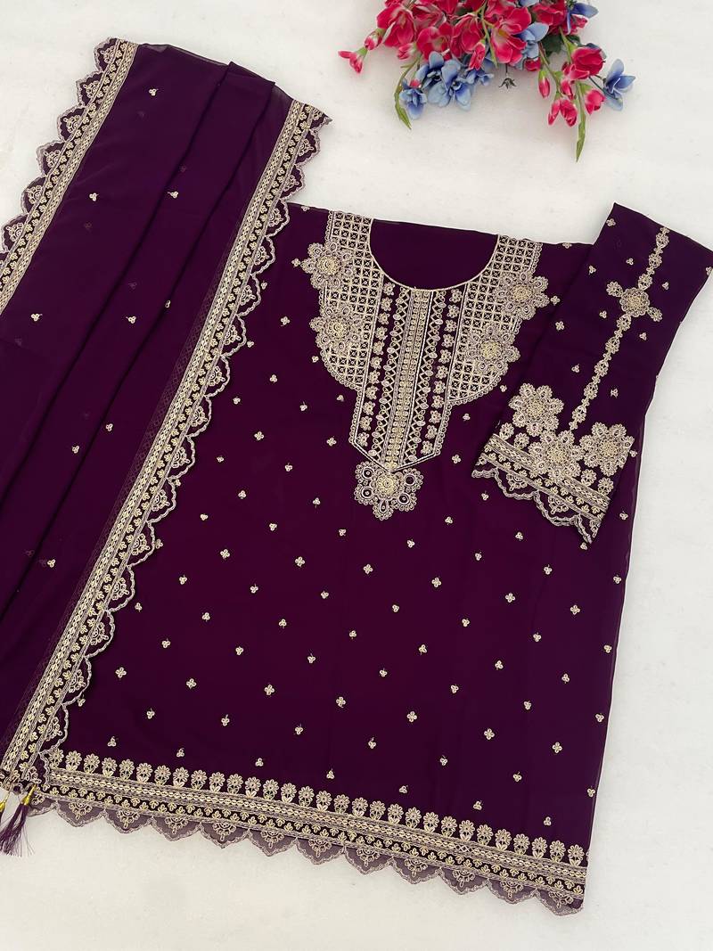 Purple georgette semi stitched suit with embroidery & sequence work