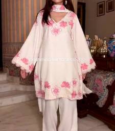 White silk readymade suit with thread embroidery work stitched